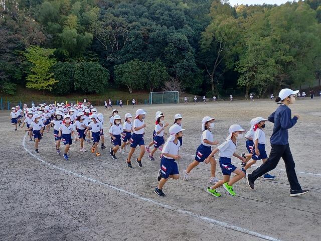 今日の朝の活動は、吾田タイムでした。通常、各学年ごとに、国語や算数の習熟や定着を図るための学習の時間ですが、11月から学年部ごとに持久走の練習を行います。今日から5・6年生は、持久走の練習が始まりました。まだ、そこまで冷え込んではいませんが、これから12月まで、寒さに負けない強い体と心を鍛えていきます。ちなみに、9日は低学年部、10日は中学年部の持久走練習開始日です。