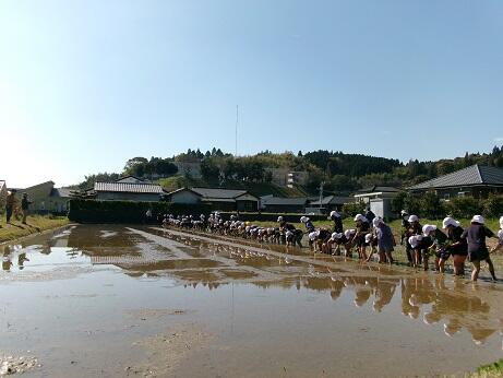 3月21日(木)には、JAはまゆうや地域ボランティアのご協力のもと、4年生が田植えを行いました。