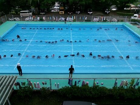 週後半には、プールの水位を浅くする対応をしていますので、ようやく1・2年生の順番となりました。