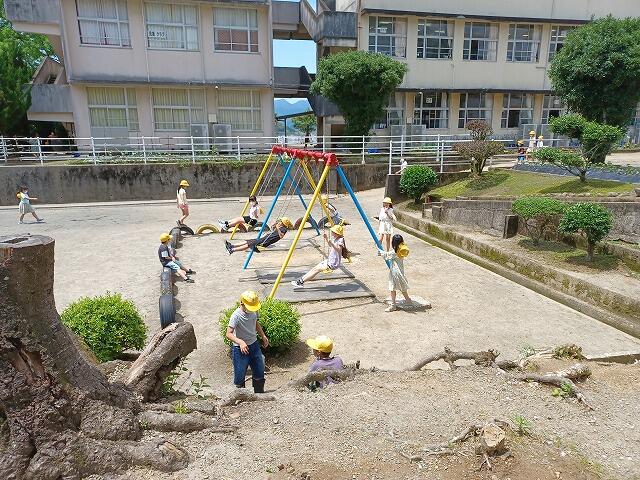 2階の渡り廊下にツバメが巣を作っていました。まだ、雛は生まれていないようです。また、放課後は、地域の自治会長でもある伊豆元さんが2年生の畑の畝作りをしてくださいました。芋の苗植えの準備で草取りから土作りまでしていただきました。おいしいお芋がたくさん収穫できるでしょう。伊豆元さん、お忙しい中、いつもありがとうございます。