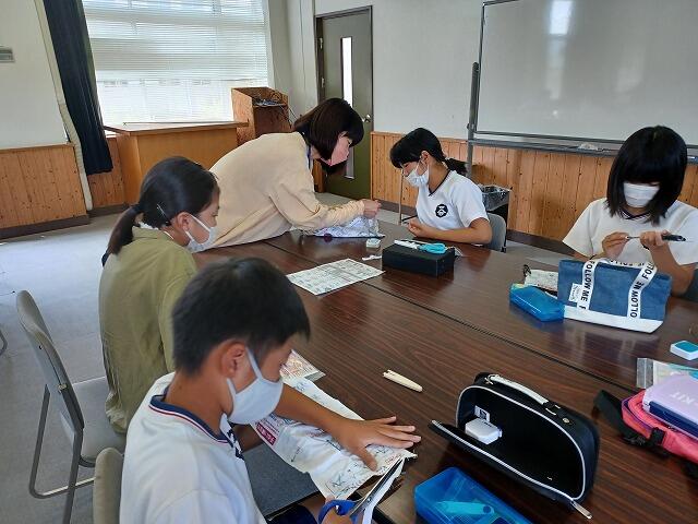 今日4年生は、先日、酒谷川で調査したことをグループごとに模造紙にまとめる活動を行いました。今回も日南保健所の永野さんと日南市役所の瀬田さんが来校され、子ども達にいろいろとアドバイスをしてくださいました。酒谷川はとてもきれいでたくさんの生き物が住んでいるとことだと分かった子ども達は、その自然を大切に守っていこうと決意を新たにしていました。