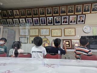 今日は、県の国際交流員であるヤン・ヘジョンさんをお招きして、第2回国際理解講座を実施しました。前回、韓国の食や住居、通貨など様々な韓国の文化について学習しました。今回は、韓国の民族衣装である「ハンボク」について教えてもらいました。子ども達は、「ハンボク」のカラフルな色や様々な模様には、いろんな意味があることを初めて知りました。それから、実際にその衣装に袖を通してみました。ズボンのようになっている「バジチョゴリ」。スカートのようになっている「チマチョゴリ」。チマチョゴリの方は、リボンの結び方など着方が難しいので、ヤン・ヘジョンさんに手伝ってもらいました。みんな初めて着るチマチョゴリやバジチョゴリを着て、満足げにポーズを取っていました。とても似合っていました。