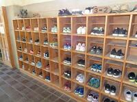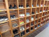 児童が登校してきて上履きに履き替える児童玄関をのぞいてみました。