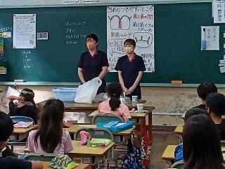 6月は、歯の衛生月間です。それにちなんで、3年生は毎年、山口歯科医院から歯科衛生士さんをお招きして、ブラッシング指導を行っています。今日は、3人の歯科衛生士さんが来校され、子ども達に、むし歯の原因やむし歯になりやすいところ等を教えてくださいました。そして、正しい歯磨きの仕方を学習しました。コロナ禍で学校での歯磨き指導が十分にできない状況ですが、教えていただいたことを各家庭でしっかり実践して欲しいと思います。歯科衛生士さん方、お忙しい中、ご指導ありがとうございました。