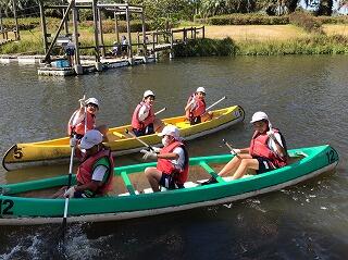 水上種目のカヌーでは、初めは上手に漕げず、前に進まず、衝突する場面もあり、悪戦苦闘。
