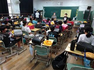 そのあと、校長先生からお話があり、1学期を振り返り、子どもたちが頑張ったことや夏休みの過ごし方について、お話がありました。