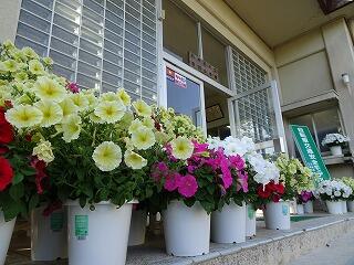 玄関前・通路のペチュニアの花鉢は、昨年度の卒業式や今年度の入学式を飾った花鉢で、市の環境整備員さん方が丹精込めて栽培し、届けてくださいました。