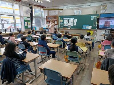 今日は、2年生がALTのアビー先生と一緒に英語の学習をしました。始めに、アビー先生のふるさとアメリカのクリスマスの様子を写真を交えて紹介してもらいました。2年生なりに日本との違いを感じ、いろいろ質問をしていました。その後、クリスマスにちなんだ英語の言葉を使って、チャンツをしたり、ビンゴゲームをしたりしました。そして最後に、英語の絵本の読み聞かせをしてもらいました。たっぷり、英語のシャワーを浴びた2年生でした。もうすぐ、クリスマスです。サンタさんがみんなのところにやって来てくれることを祈っています。