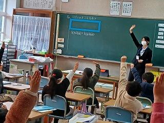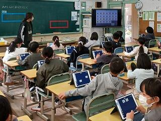 2年生は算数で、長さの勉強でした。計算の仕方を考えて、単位に気を付けながらたくさん練習をしていました。3年生は、学級活動で「わたしらしく、あなたらしく」というテーマで友だちの良いところを見つけ合う学習でした。子ども達は、タブレットを効果的に活用して、「みんなちがってみんないい」ということを実感していました。