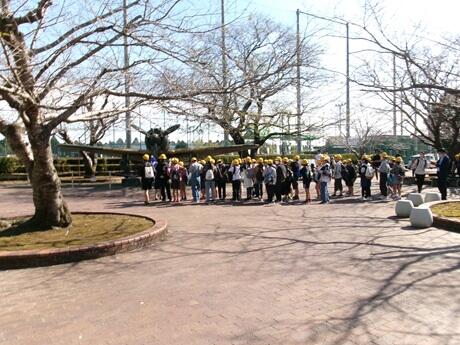 10月24日(火)には、6年生が鹿児島県へ修学旅行に出かけました。中央公園で出発式を行いました。