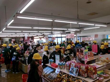 講話を聞いた後、千羽鶴を奉納し、すぐに館内に掲示してもらえました。その後、おみやげを買い込んでいました。