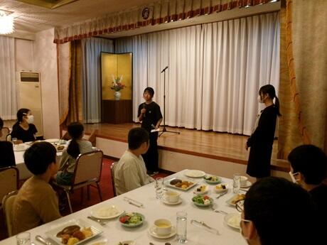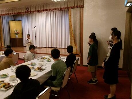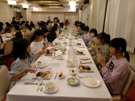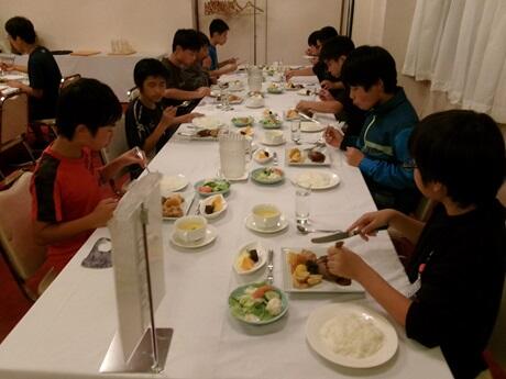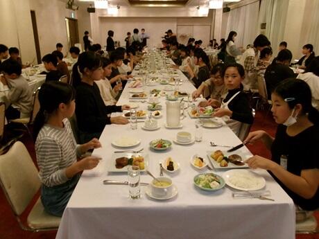 アクアガーデンホテル福丸には、予定よりも早く到着しました。ナイフとフォークを使っての洋食体験でした。