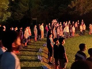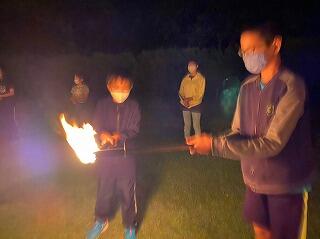 歌を歌ったのち、最後はたいまつの炎を受け渡し、子どもたちみんなで友情交換を行いました。