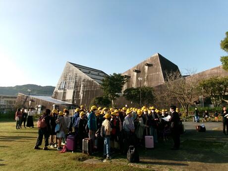 桜島では記念写真を撮った後、バス中でゲームや「茶碗蒸しの歌」などで盛り上がり、帰路につきました。