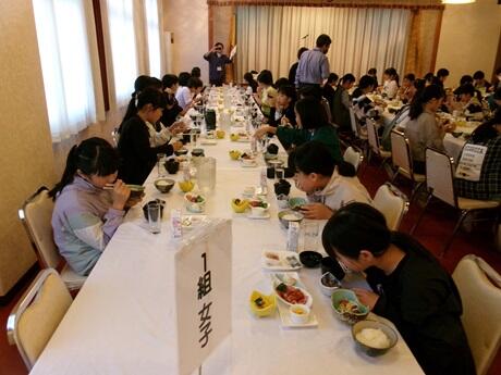 10月25日(水)には、6年生が修学旅行2日目の体験活動でした。朝食をしっかりと食べることから始まりました。