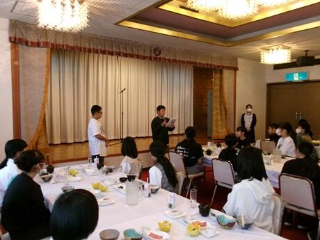 アクアガーデンホテル福丸には、予定よりも早く到着しました。ナイフとフォークを使っての洋食体験でした。