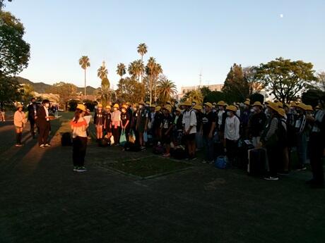 10月24日(火)には、6年生が鹿児島県へ修学旅行に出かけました。中央公園で出発式を行いました。