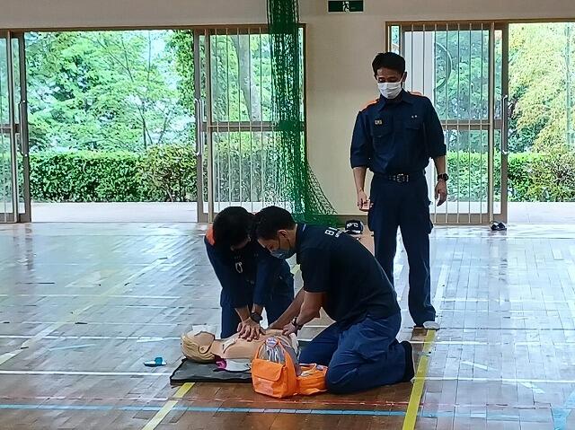 今日の職員研修は、水泳指導が始まる前に心肺蘇生法講習会を行いました。日南消防暑から3名の消防士さんを招聘して、子ども達の命を守るためのスキルを学びました。心臓圧迫とAEDの使い方を教えていただきました。職員は、真剣に話を聞いて、実技演習を行いました。もうすぐプール開きです。水泳指導は、子ども達の楽しみにしている学習ですが、危険と隣り合わせの学習でもあります。約束やルールをしっかり守って、泳力を伸ばせるようにがんばっていきます。