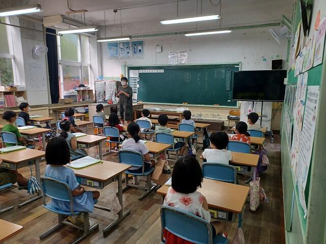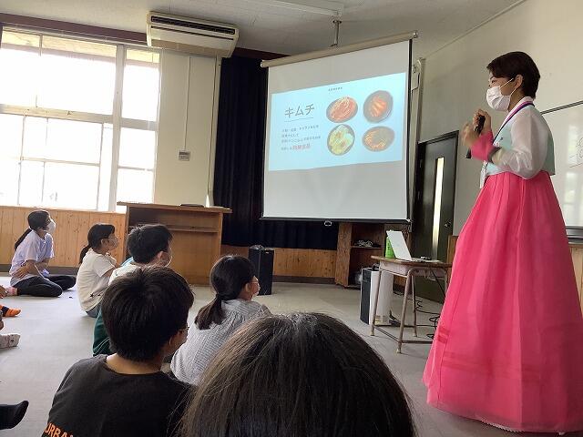 今日は、6年生を対象に国際理解講座を行いました。国際交流員のヤン・ヘジョンさんを講師としてお招きし、韓国について、いろいろ教えていただきました。ヤンさんは、韓国の民族衣装に身を包み、用意してくださったプレゼンやビデオを使って、韓国の国旗、 通貨 、伝統家屋、伝統衣装、食文化、ハングルと韓国語など多岐にわたる文化を子ども達に伝えてくださいました。KPOPが好きな子ども達もたくさんいるようで、ヤンさんの話を興味深そうに聞いていました。更に韓国に対する興味・関心が高まりました。次回は、9月に来られる予定です。今から楽しみです。