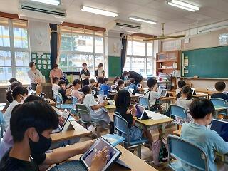 今日は、5・6年生の参観日でした。さすが高学年、どちらの学年の参観授業もタブレットを有効に活用した学習活動をしていました。保護者の皆さんも一緒に操作したり、考えたりする場面もあり、とても和気藹々な雰囲気の参観授業でした。子ども達は、集中して学習に取り組んでいました。また、学級懇談でも保護者の皆さんにタブレットの有用性を体感する場を設定するなど、新しい学習ツールとしてのタブレットを知っていただけたのではないでしょうか。今度とも、子ども達の健やかな成長を学校と家庭とが連携して、できることを最大限にいきたいと考えます。