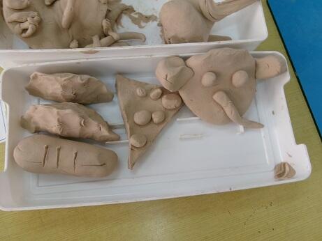 子どもは自分の思いやイメージで粘土作品を作り上げていきます。互いの作品も見合うこともありました。