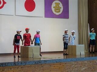 運動会のスローガン発表があり、6年2組の「令和最初の運動会!主役は君だ 仲間と心を一つに めざせW優勝」に決まりました。