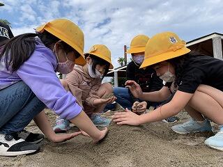 大島の美しい海、素晴らしい景色、自然の生物など多く、さらに国民文化祭である南郷大島ミュージアムの数々の作品も展示してあり、子どもたちは、景色、生物、作品に魅了されていました。