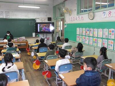 コロナ禍であるので、Zoomによる「紙芝居」配信を行いました。紙芝居を先生方が読み、それを録音して、紙芝居を読み聞かせる形で、全学級に配信しました。