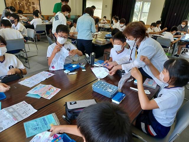 5年生の家庭科の時間に、学習支援ボランティアの方々が来校され、裁縫の指導をしてくださいました。今回は、かかりぬいやボタン付けを一緒にしてくださいました。子ども達にとって経験がほとんど無い、針と糸での手縫いは、とても難しそうでした。でも、ボランティアの方々が丁寧に教えてくださっていたので、子ども達は、何とか時間内に課題を終えることができていました。お忙しい中、本当にありがとうございました。