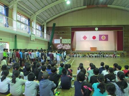 1年生を迎え3週間余り経ちました。4月20日(木)には、全校児童による1年生の歓迎集会を行いました。各学年から歓迎の言葉を贈り、1年生もそれを受け、立派に挨拶ができました。最後は、みんなで校歌を合唱し和やかな雰囲気で歓迎集会を終えました。