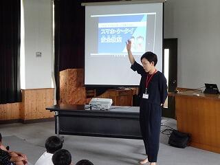 外部講師には、NTTドコモ職員の方を招き、スマホ・ケータイを持つときに気をつけてほしいことについて、お話がありました。