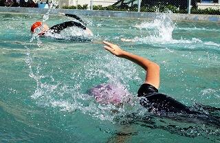 記録会が終わり、最後に全員がプールに入り「ビッグウェーブ大作戦」を実行。