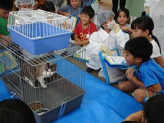 ねこを観察したり、いぬとふれあったり、ビデオを見て動物病院の先生に質問したりと、熱心に動物の学習をしました。