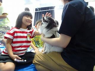 第1学年の教室で行われ、最初は、1組は「ねこのコーナー」、2組は「いぬのコーナー」、3組は「ビデオのコーナー」。その後、交代でコーナーを回りました。