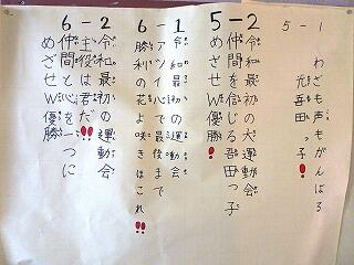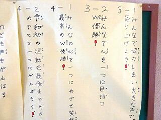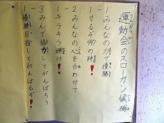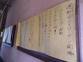 先日、掲示板に運動会のスローガン候補が張り出されました。