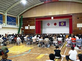 運動会のスローガン発表があり、6年2組の「令和最初の運動会!主役は君だ 仲間と心を一つに めざせW優勝」に決まりました。
