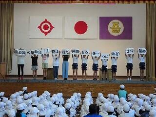 全校児童の投票により、運動会のスローガンが決まり、結団式で発表される予定です。