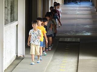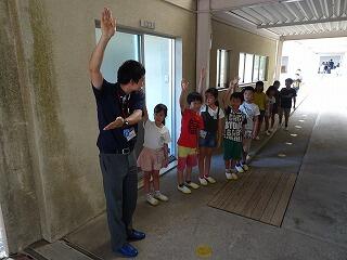 1・2年生は渡り廊下を使って、安全な道路の歩き方や横断歩道の渡り方も学びました。
