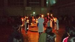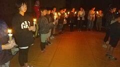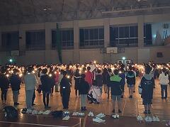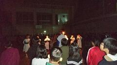 宮崎市立赤江小学校との合同でのキャンドルファイヤーとなり、学校紹介・合同ソーラン節などで交流し、最後はロウソクの炎で友情交換を行いました。