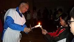 おごそかであたたかいロウソクの炎に照らされて充実した表情の子どもたちでした。