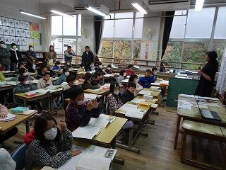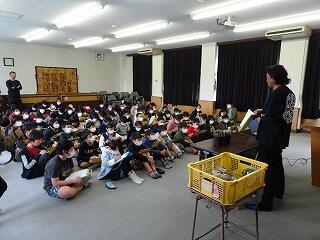 子どもたちは積極的手を上げ、質問に答えていました。