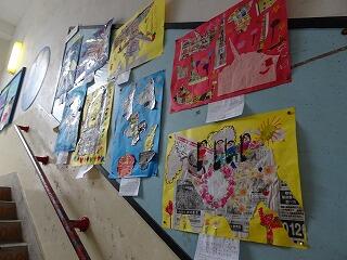 廊下・階段等には、授業で作成したたくさんの作品も展示。