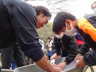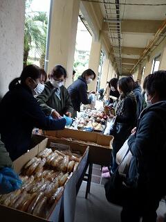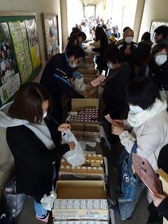 PTA役員と事業部の皆さんが整理券と引き換えに、手際よく受け渡しをされました。