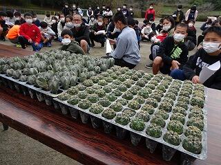 サボテンを持ってみんなで記念撮影後、最後に6年生がお礼の言葉を述べました。