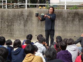 地方にはなかなかいらっしゃらないサボテン職人という職業の話を聞くことで、将来の夢を考える事に役立てて欲しい事と植物にふれる事で豊かな情操を育み事が目的です。