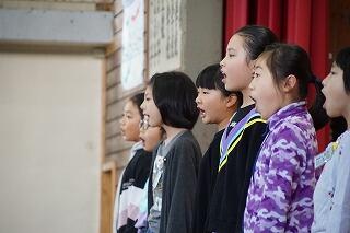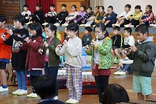 その後、2年生、4年生、5年生、1年生、音楽クラブ、3年生、6年生の順番で合唱・合奏を披露。