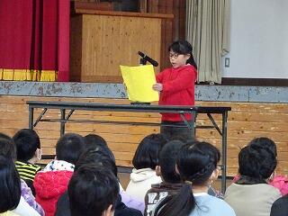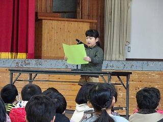 二学期を振り返り、2年生と5年生が作文発表をしました。