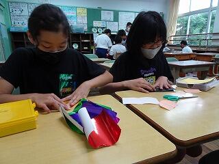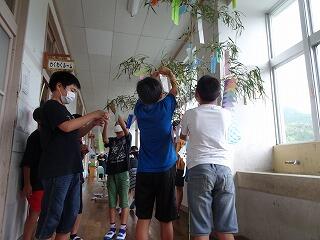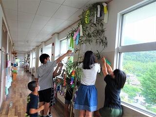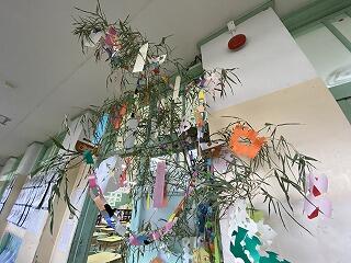 5・6年生の学級では、竹笹を準備し、短冊や飾り付けをしていました。