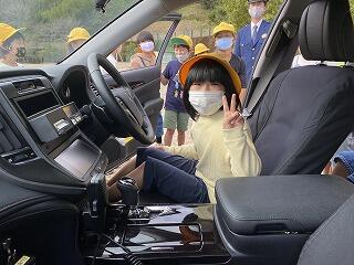 仕事の説明のあとは、パトカーと白バイクを乗車させていただき、子どもたちは興味津々。