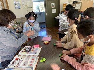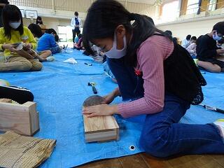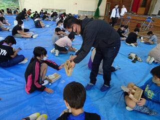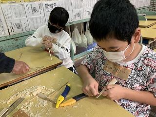 小刀や編針など、初めて使う児童がほとんどでしたが、丁寧に優しくご指導いただき、徐々に慣れて、自分の作品が出来て嬉しそうにしていました。